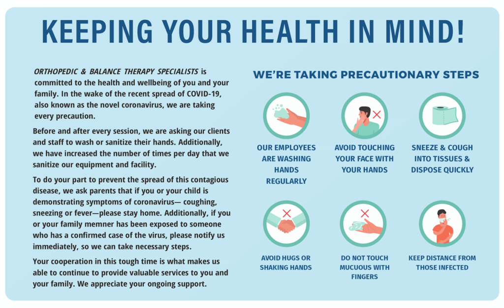 We know everyone has been concerned about all the news regarding COVID-19, or Coronavirus. We wanted to take a minute to offer information about what we are doing, as well as some tips that you can consider for yourself.